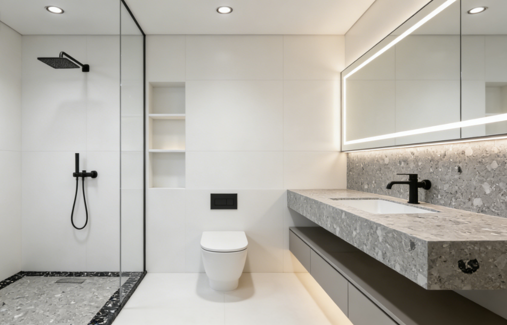 谁懂啊!装修选板材一眼爱上的沃尔法水磨石,把 “侘寂风 + 工业风” 焊在我家了!